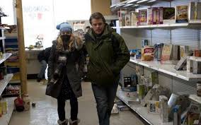 In Contagion (2011) with Matt Damon, people go crazy, like rushing out to grab everything off the grocery shelves, only crazier.